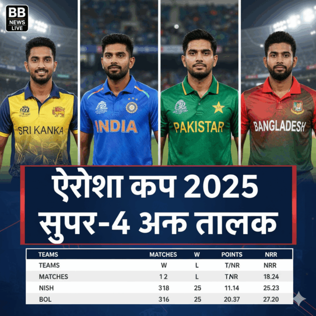 एशिया कप 2025 सुपर-4 पॉइंट्स टेबल (22 सितंबर तक)