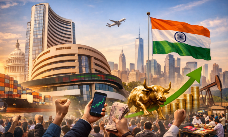 बाजार का ‘सुनामी’ जैसा उछाल (Reporting Feel) खबर आते ही बॉम्बे स्टॉक एक्सचेंज (BSE) का सेंसेक्स 3,100 अंकों की छलांग लगाकर रिकॉर्ड ऊंचाई पर पहुंच गया। सूरत के कपड़ा व्यापारी हों या बेंगलुरु के आईटी प्रोफेशनल, हर कोई इस डील में अपना मुनाफा देख रहा है। रिलायंस, टाटा मोटर्स और विप्रो जैसे शेयरों में आज ऐसी खरीदारी देखी गई जैसे कोई दिवाली का सेल हो।
